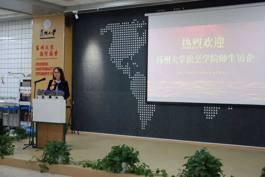交流伊始,公司常务副总经理陈昌静对扬州大学旅游烹饪学院师生的来访表示热烈欢迎。陈总从苏州的地缘和经济优势、行业的前景和能力要求、公司的发展和人才需求,为来访学生做生涯指引。
