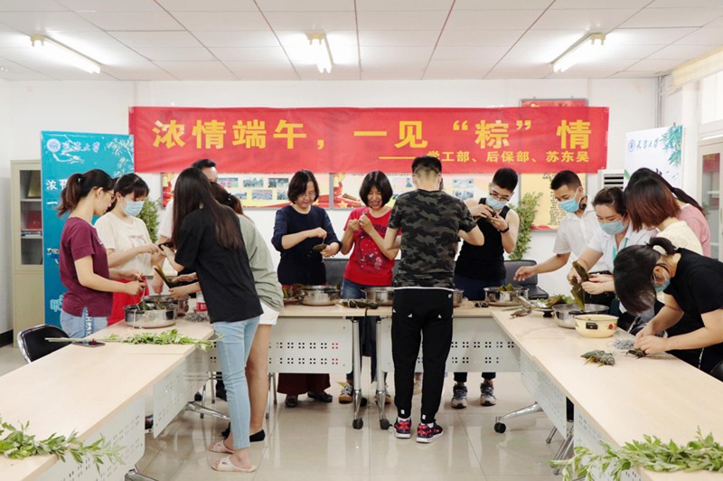 6月24日上午,苏东吴天津大学项目双校区同时举办“浓情端午,一见“粽”情” 活动,为天大师生送上节日的问候和毕业的祝福。此次活动邀请了学生代表、学工部老师代表、后保部老师代表、项目部员工代表一起参加。