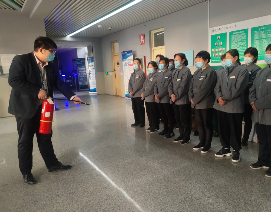 为切实做好校园冬季防火工作,提高物业工作人员消防安全意识及消防技能水平,特举行消防安全知识培训。项目工作人员细致地讲授了防火、灭火等消防安全知识,并对一线员工重点讲解了消防器材的操作使用,以及火灾初起阶段的扑救方法。