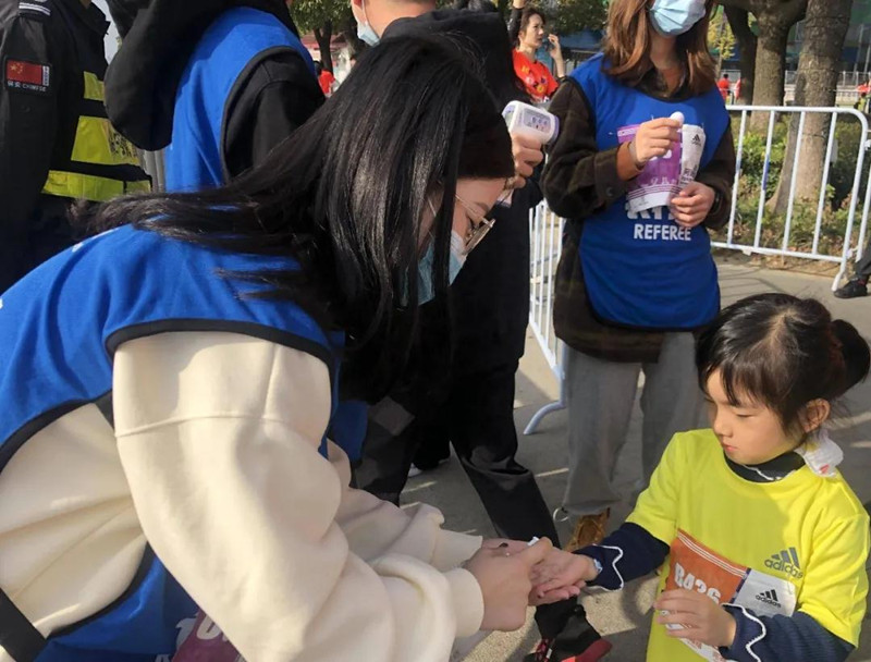 9:30分发枪起跑, 在家长的陪伴下孩子们激发出了非凡的活力和天真童趣的一面,他们肆意地奔跑在风景优美的金鸡湖畔,穿梭在花园般的城市之中,并在万众瞩目中冲过终点。伴随着欢声笑语获得了人生中第一块属于自己的马拉松奖牌。回到主会场通过补给岛之后,每个孩子都获得一块马拉松奖牌,家长们纷纷带孩子到现场设置的合影墙、名字墙、卡通人偶旁拍照,留下这特别而又美好的一瞬间。