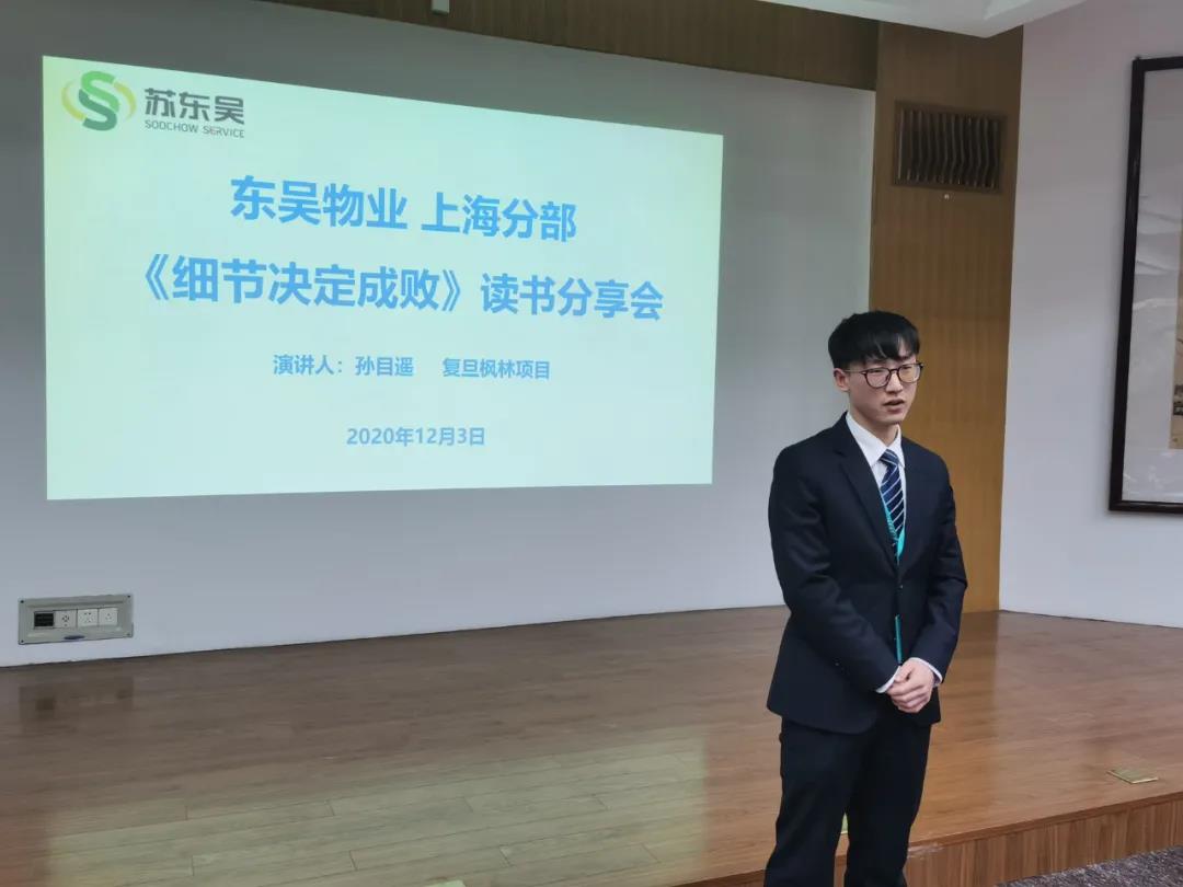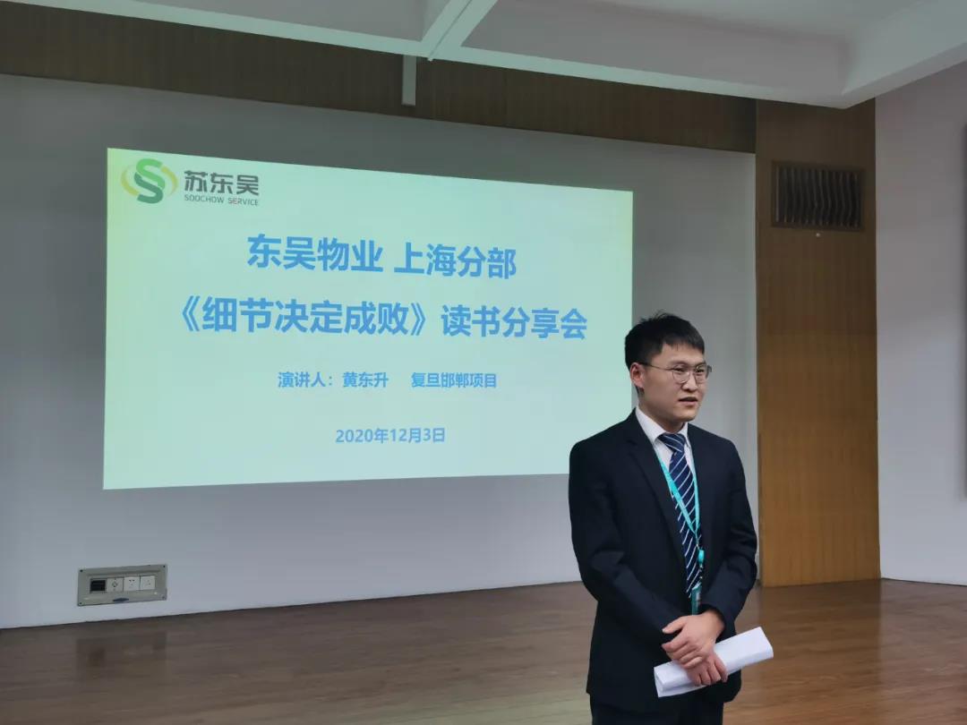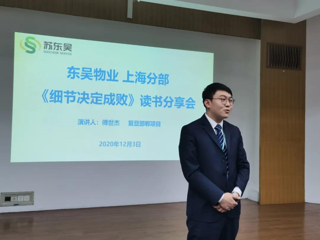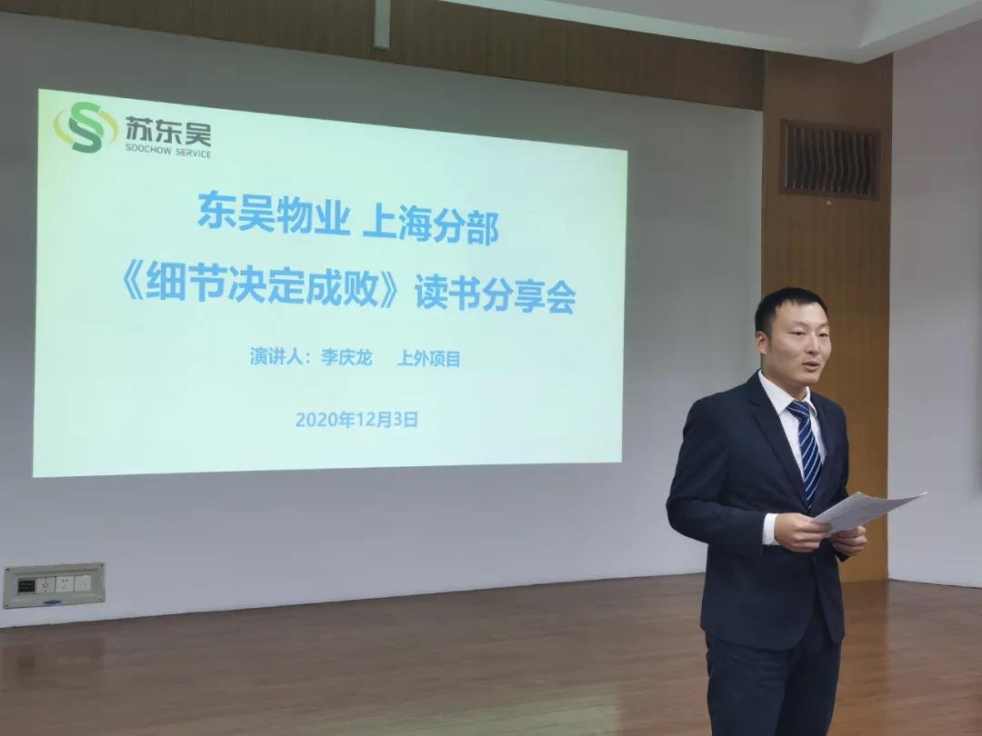 12月3日,东吴物业上海分部2020年终工作汇报暨《细节决定成败》读书分享会在复旦大学枫林校区举行。上海分部主要管理人员30余人参加总结会,会议由上海分部经理朱正国主持。
