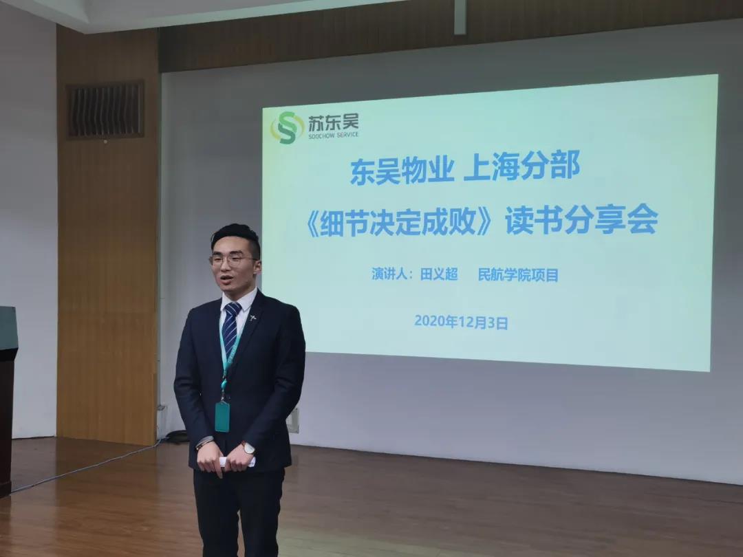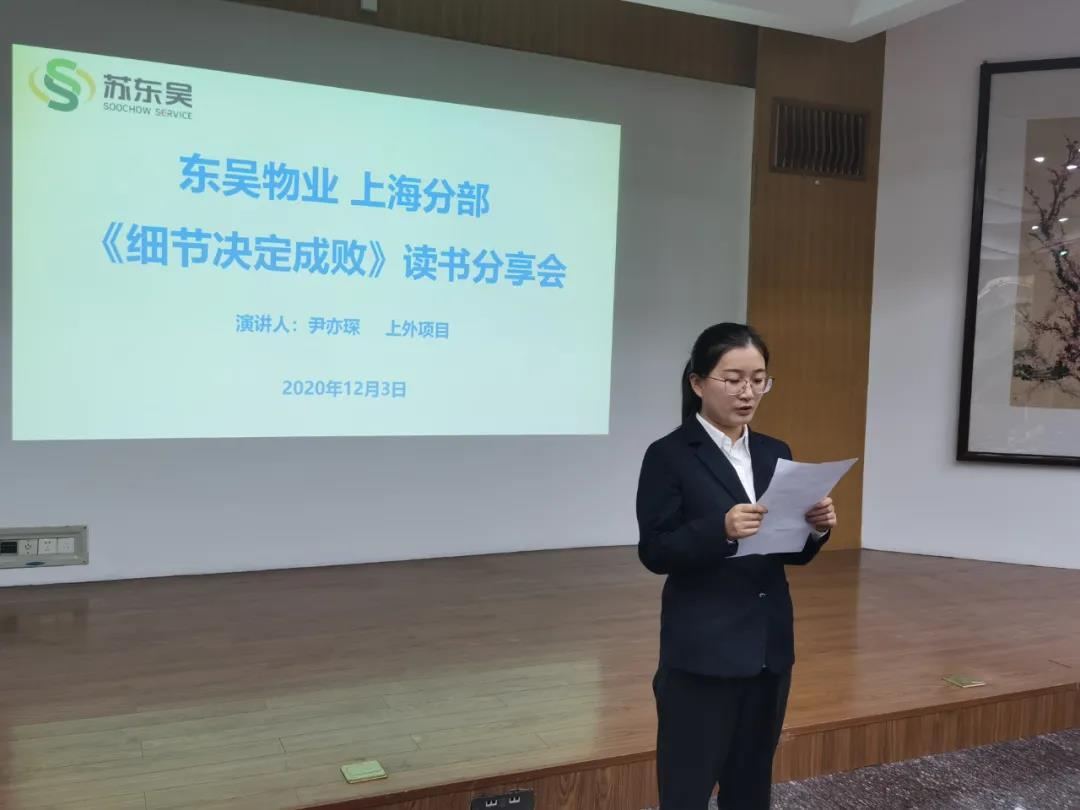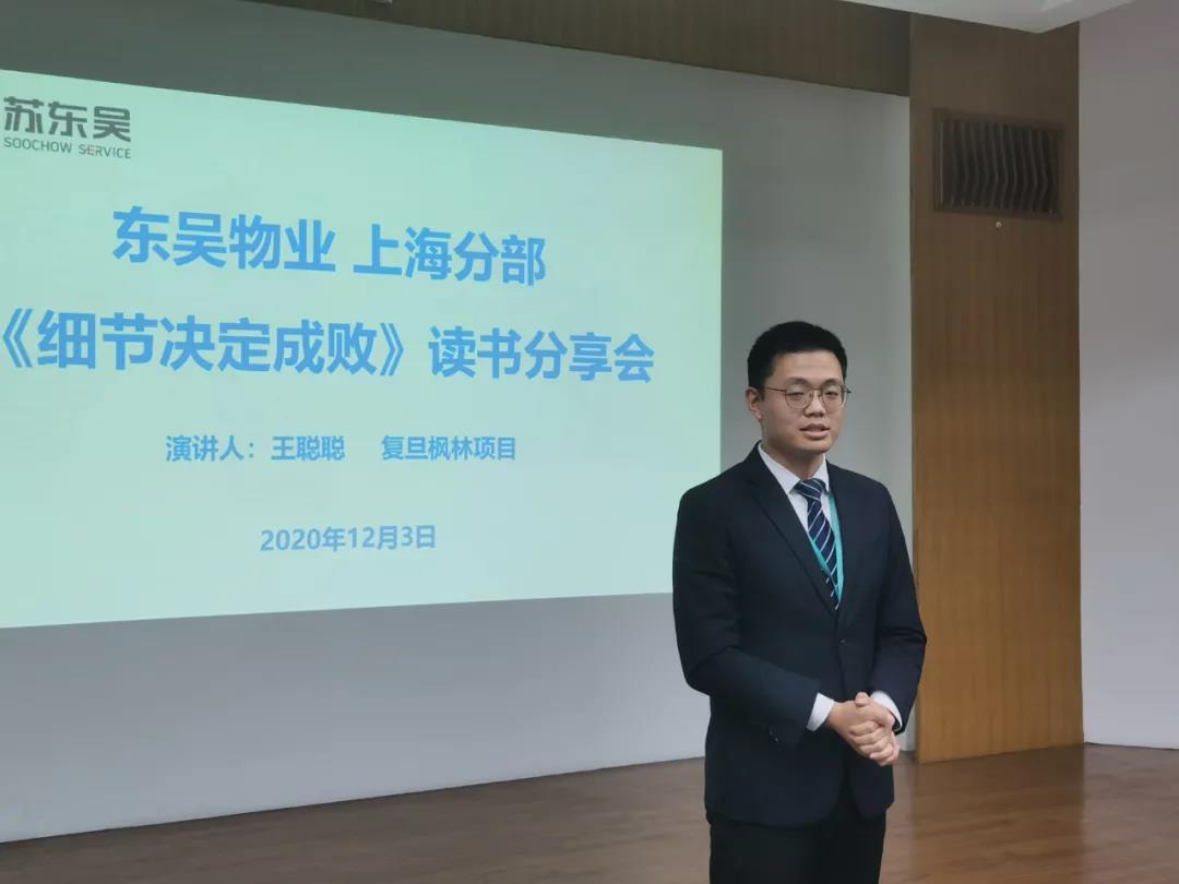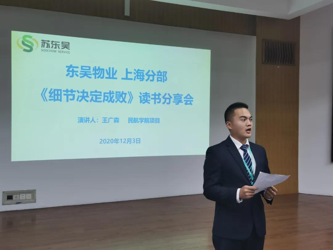 12月3日,东吴物业上海分部2020年终工作汇报暨《细节决定成败》读书分享会在复旦大学枫林校区举行。上海分部主要管理人员30余人参加总结会,会议由上海分部经理朱正国主持。